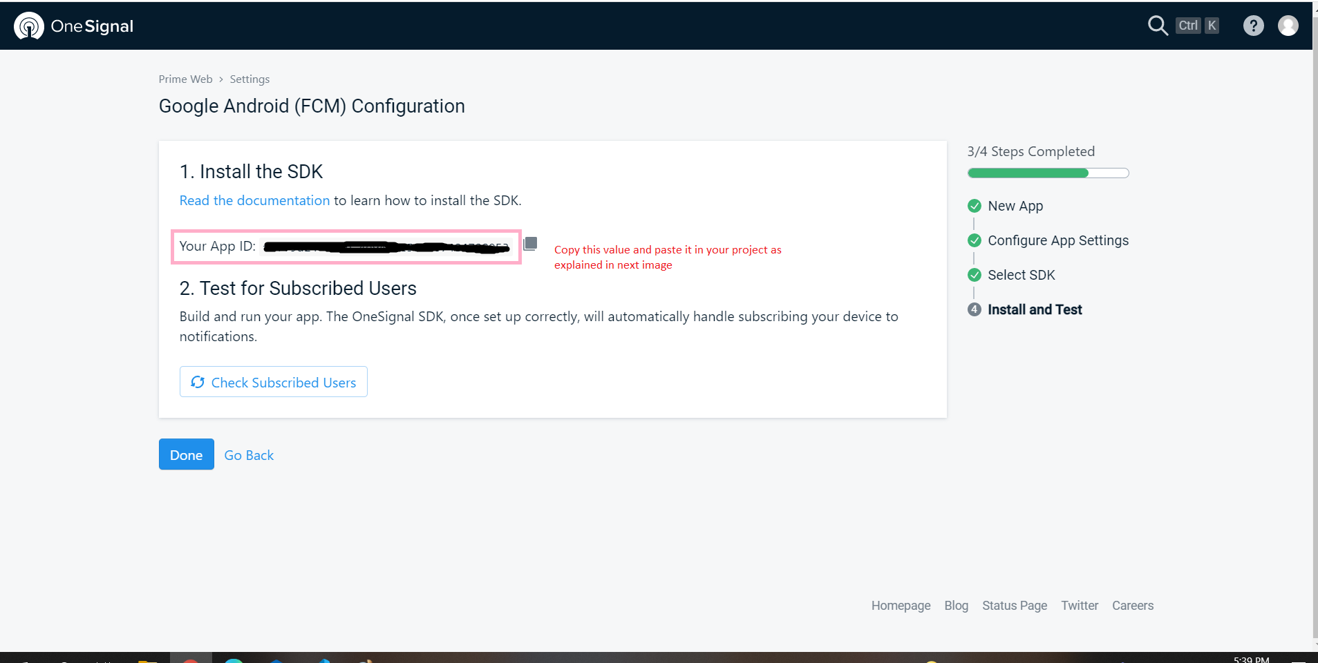 Step 7: If you didn't have copy app id before then you can get Onesignal App ID from this settings here and paste it to admin setting tab